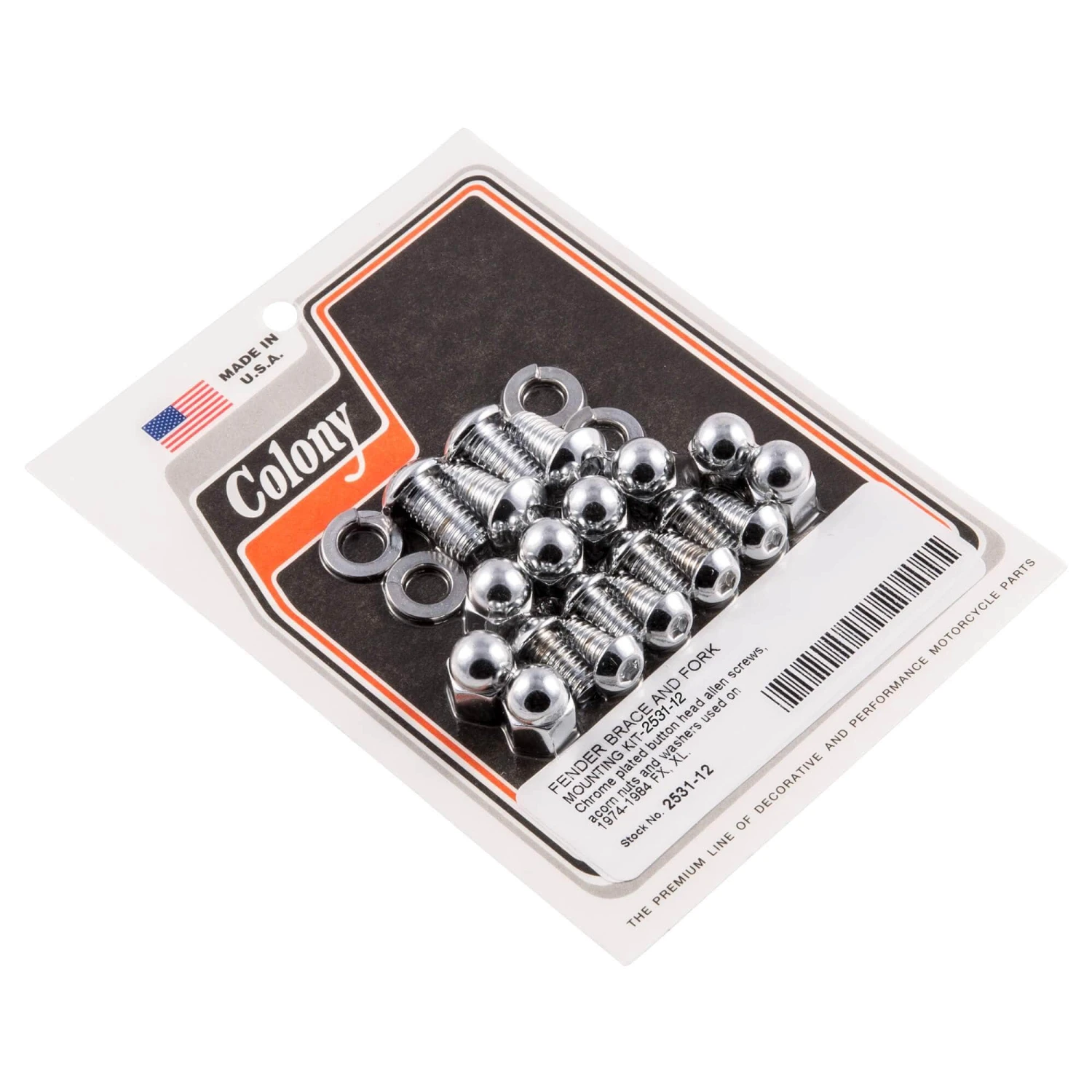 FENDER BRACE AND FORK MOUNTING KIT Chrome plated button head allen screws, acorn nuts and washers used on 1974-1984 FX, XL.