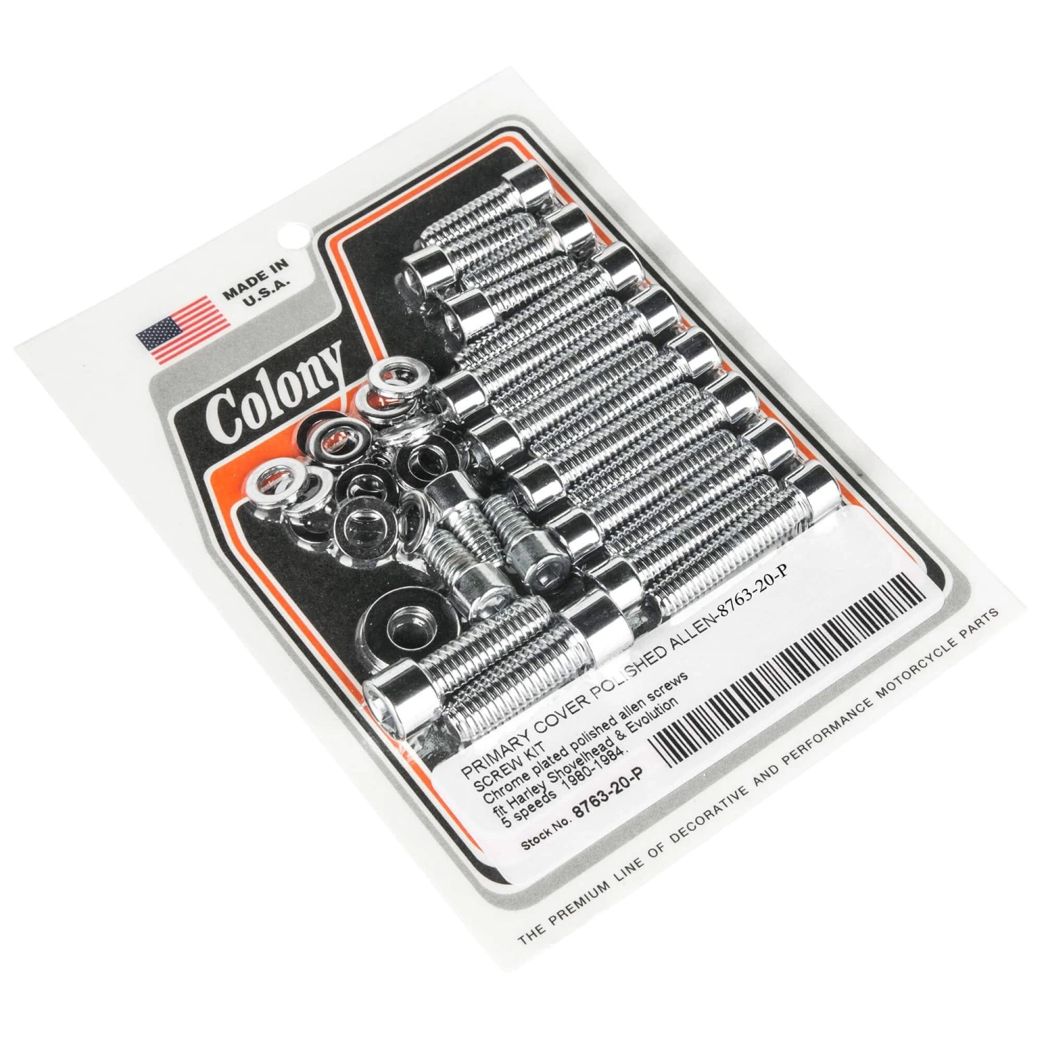 #8763-20-P Primary Cover Smooth Chrome Allen Screw Kit Shovelhead Evo 5 Speed 80-84