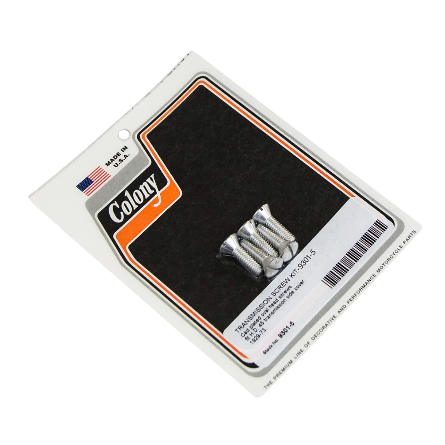 TRANSMISSION SCREW KIT Cad plated oval head screws fit H.D. 45 transmission side cover 1929-73.