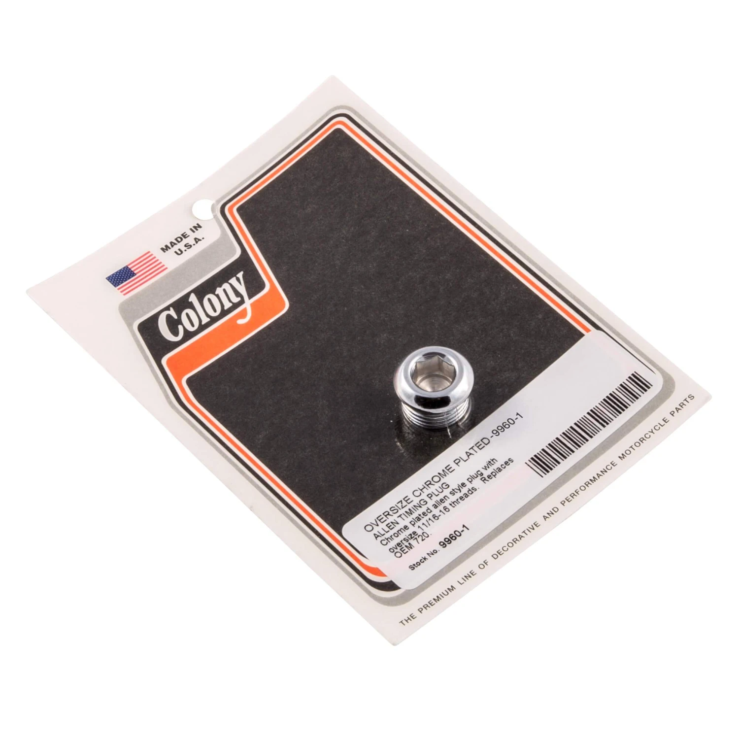 OVERSIZE CHROME PLATED ALLEN TIMING PLUG Chrome plated allen style plug with oversize 11/16-16 threads. OEM 720.