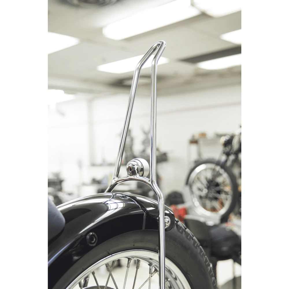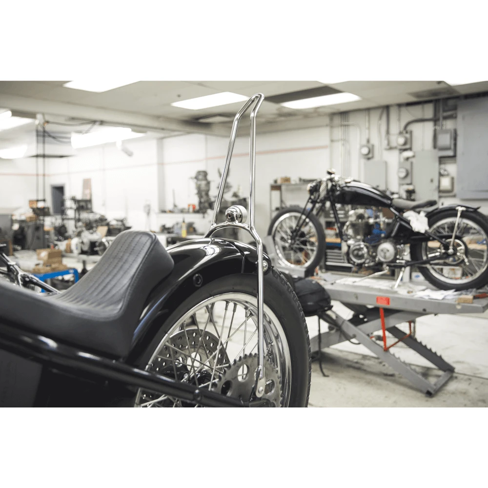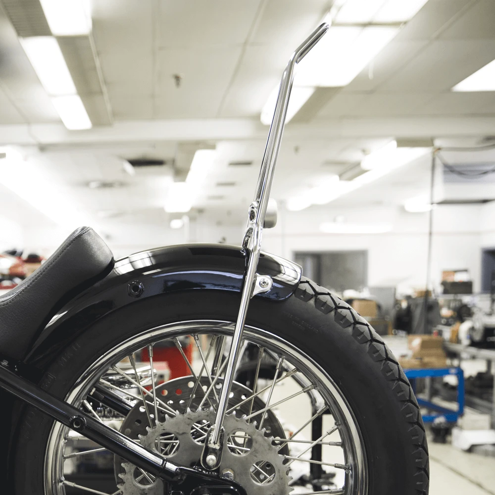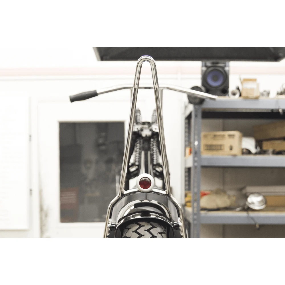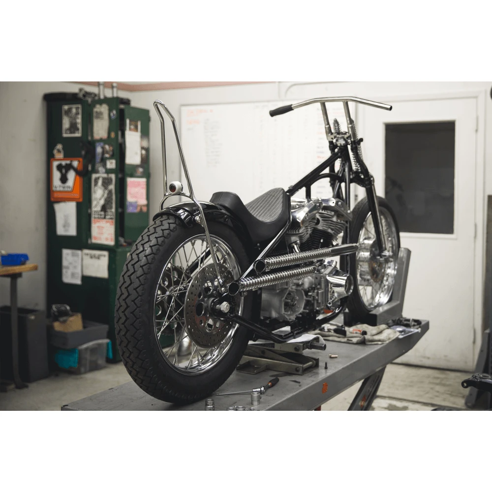 gives you all the parts necessary to mount a sissy bar to pretty much any chopper. Jesse Bassett at the Gasbox made this kit easy as possible, just cut the loop to length and weld! Kit includes pre-bent 26″ tall sissy bar loop, 2 mounting tabs, 2 pre-bent axle plate mounts, and pre-drilled axle plate mounts, and two 5/16″-18 mounting bungs. Perfect for mounting a Gasbox fender, trailer fenders, a Stingray or Manta Ray fender, or whatever other fender you want to use! Made in Ohio, USA.