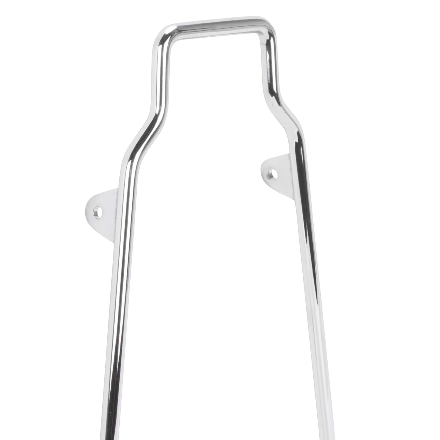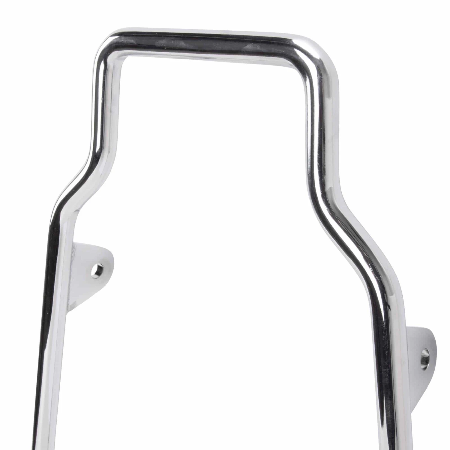 Set up for a variety of fenders and tail light combinations right out of the box, and beautifully chromed. This sissy bar is designed specifically for use with 16″ rear wheels.