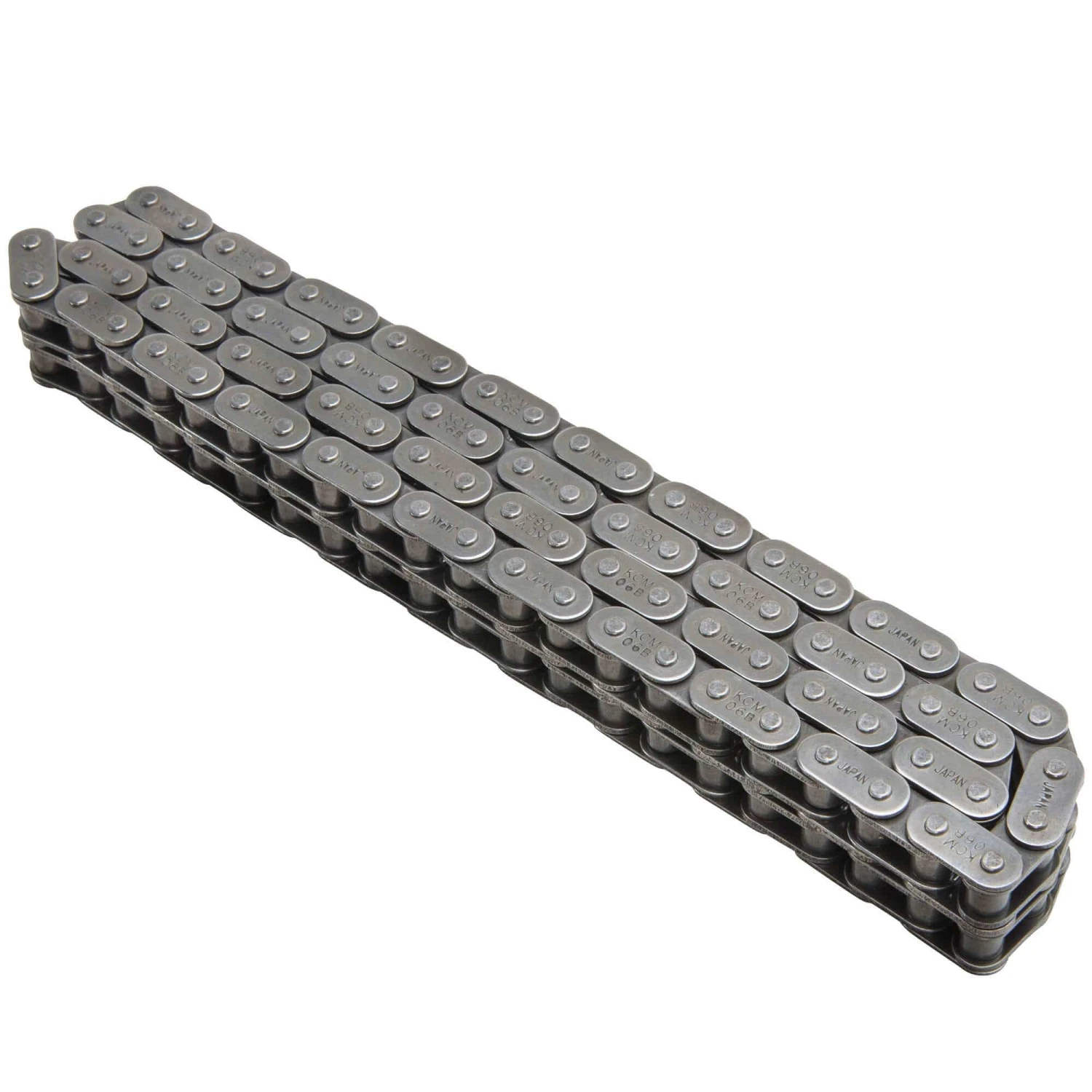 This duplex (dual row) chain is for Triumph motorcycles with a duplex primary such as unit construction (1963 and up) 650 c.c. Triumphs. No master link needed on these style chains, they are a continuous loop and are put in place at the same time as your engine sprocket and clutch hub as one unit. The stock Triumph part number is 60-0477. Made in Japan.