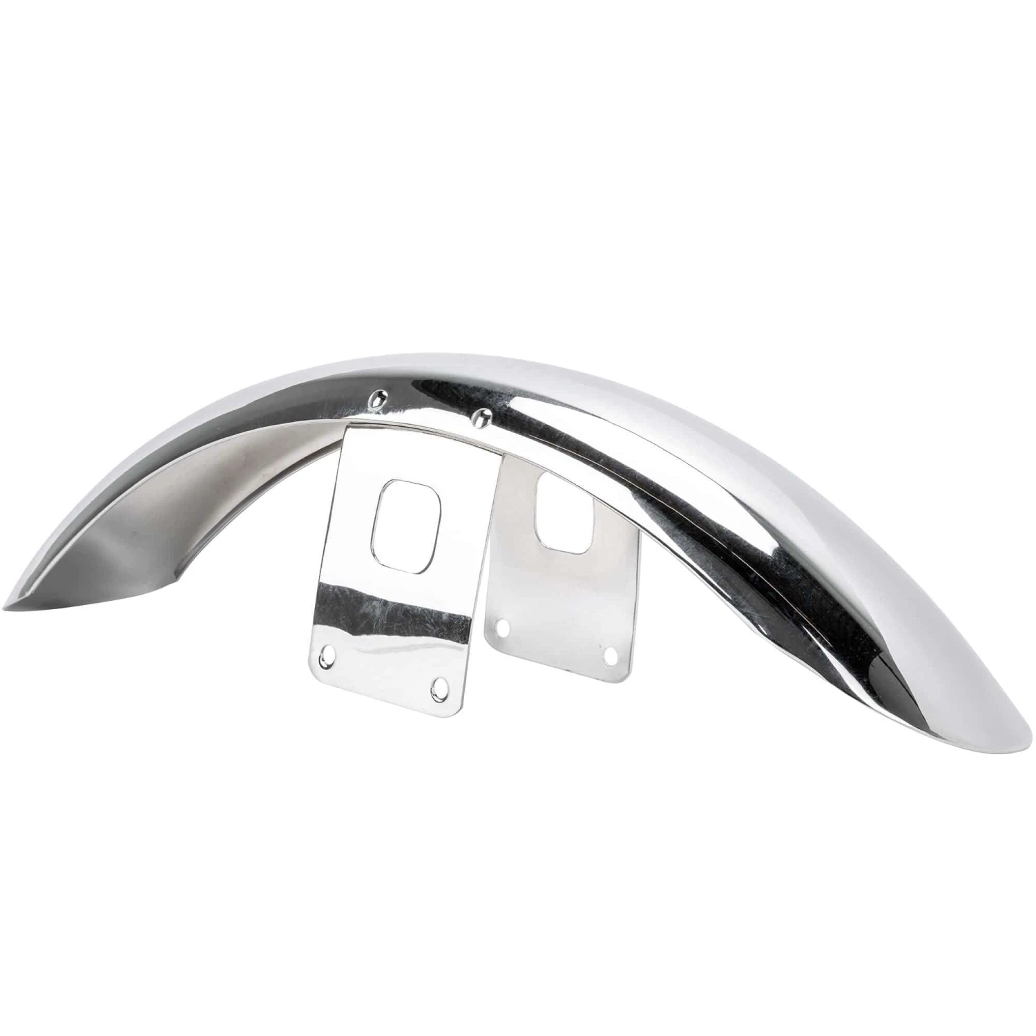 Chrome may not get ya home but it sure looks good! This chromed steel front fender comes ready to paint and bolt on to your Harley-Davidson with 35mm or 39mm Narrow Glide front forks. This includes 1973 and later XL (Sportster), FX and FXR models. This front fender works perfectly with 21″, 19″ and 18″ front wheels. Please note that tires wider than 100/90-19 on 18″ and 19″ wheels will have a clearance issue as the tire can rub the fender struts / mounting brackets. This is a direct replacement for Harley-Davidson OEM # 59031-83.