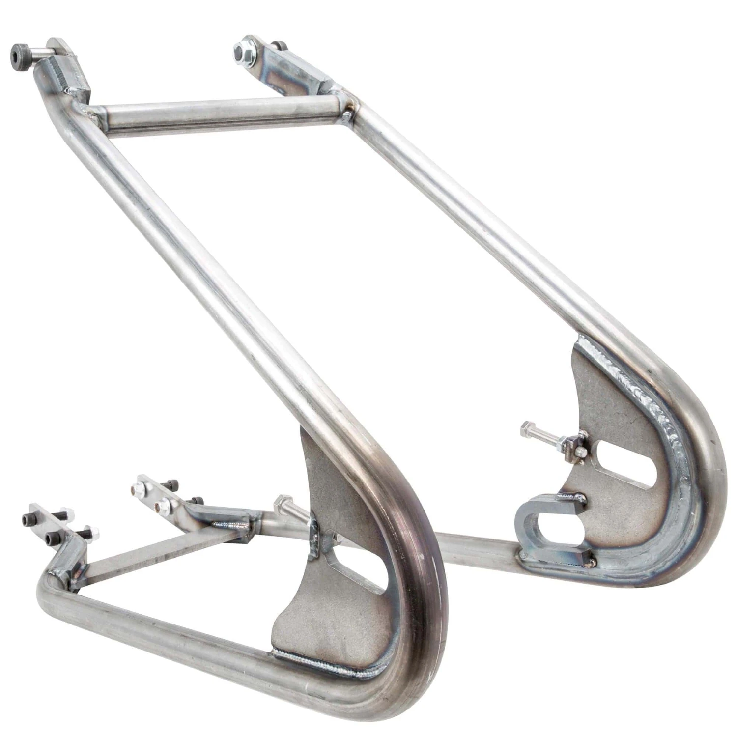 Hand-made from 1″ x .125″ wall crew tubing with 5/16″ thick axle plates and designed to bolt right up to your frame with ease. Just what you need for that Ironhead bobber, chopper or race bike build. This hardtail frame is completely dialed in, you will not find a more complete or well-designed Ironhead hardtail anywhere.