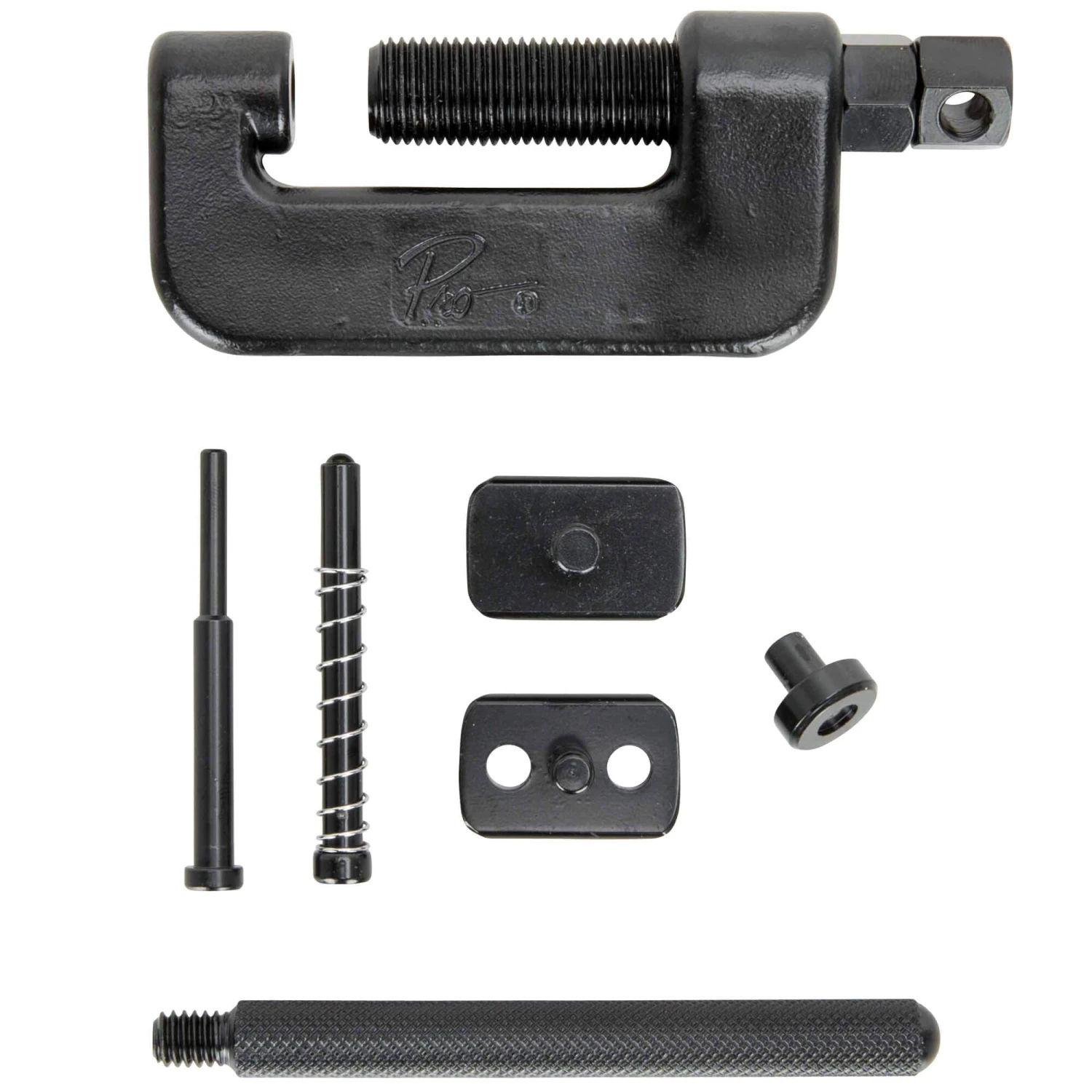 Break, press, and rivet most 520, 525 and 530 standard and O-ring chains with one compact tool. Features a strong, durable hardened body, riveting tip and breaker pin and the handle is removable for compact storage. Includes: