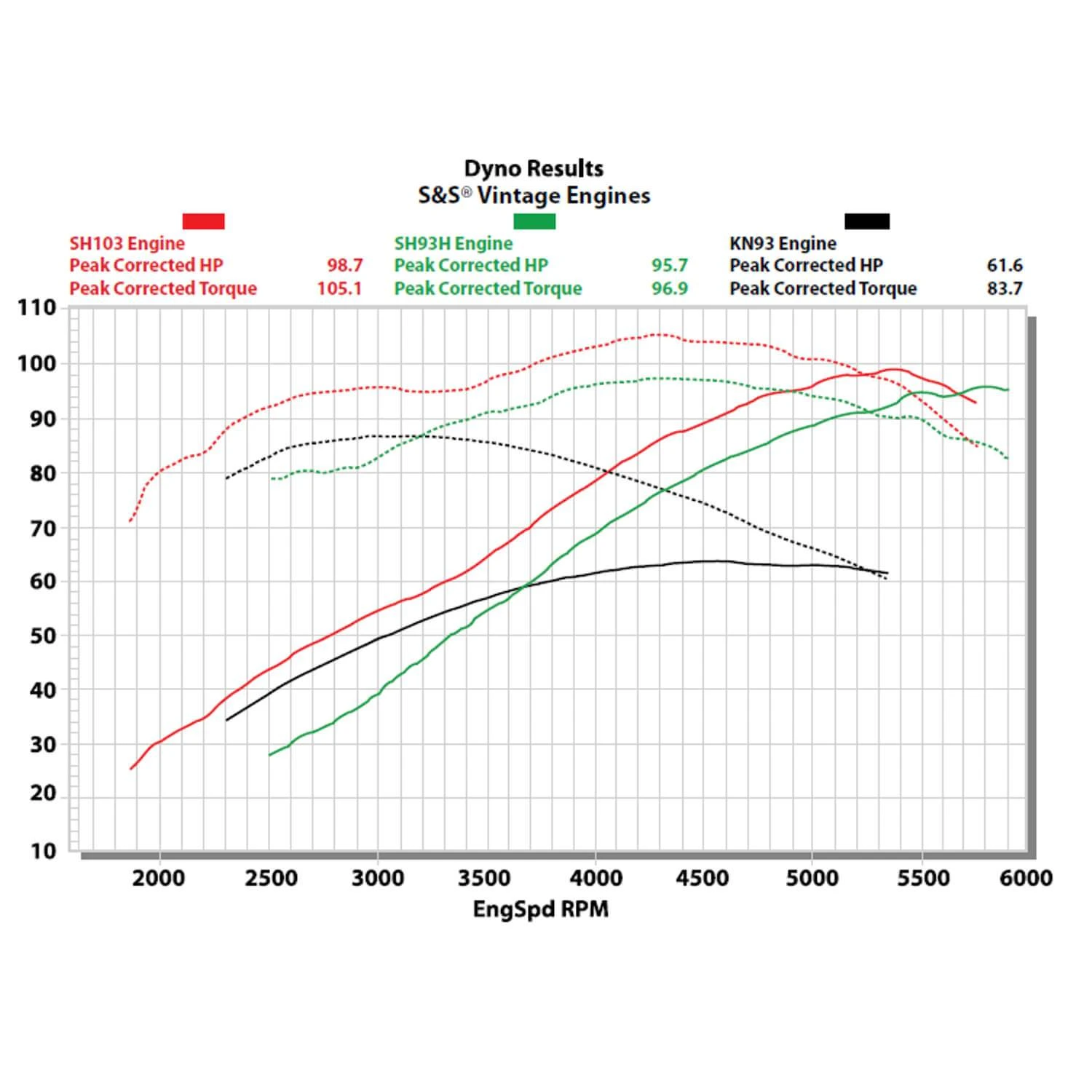 - 93″ displacement, 8.5:1 compression , 4-1/2″ stroke, 3-5/8″ bore