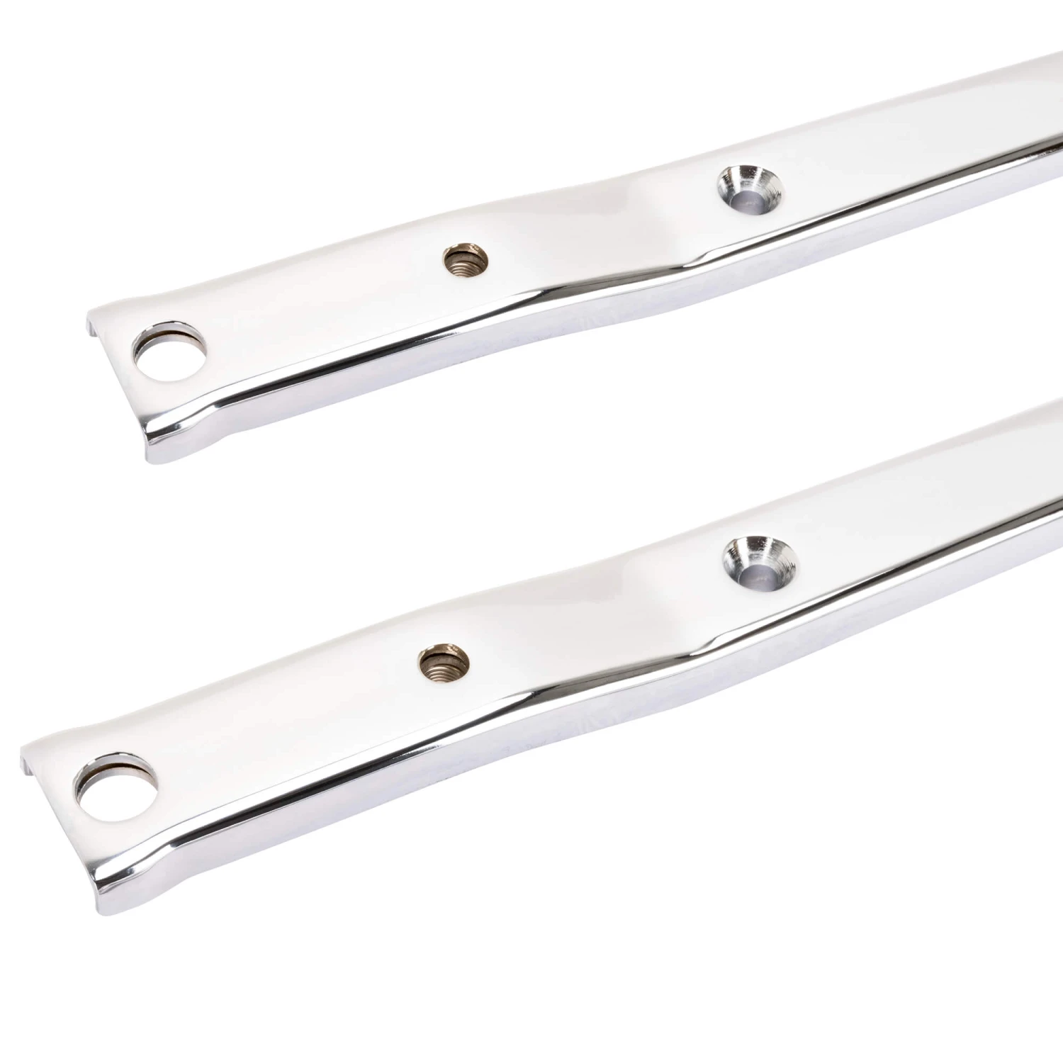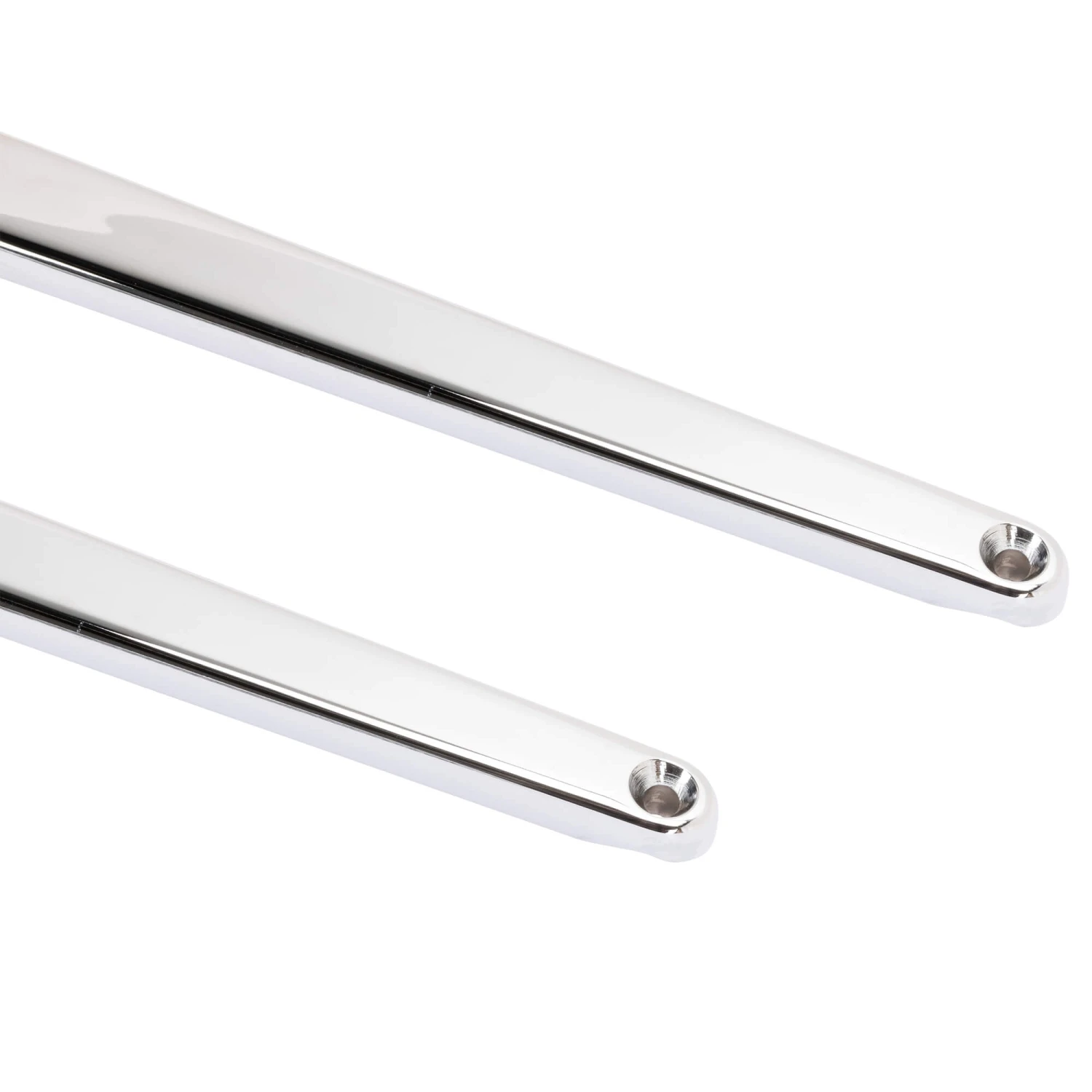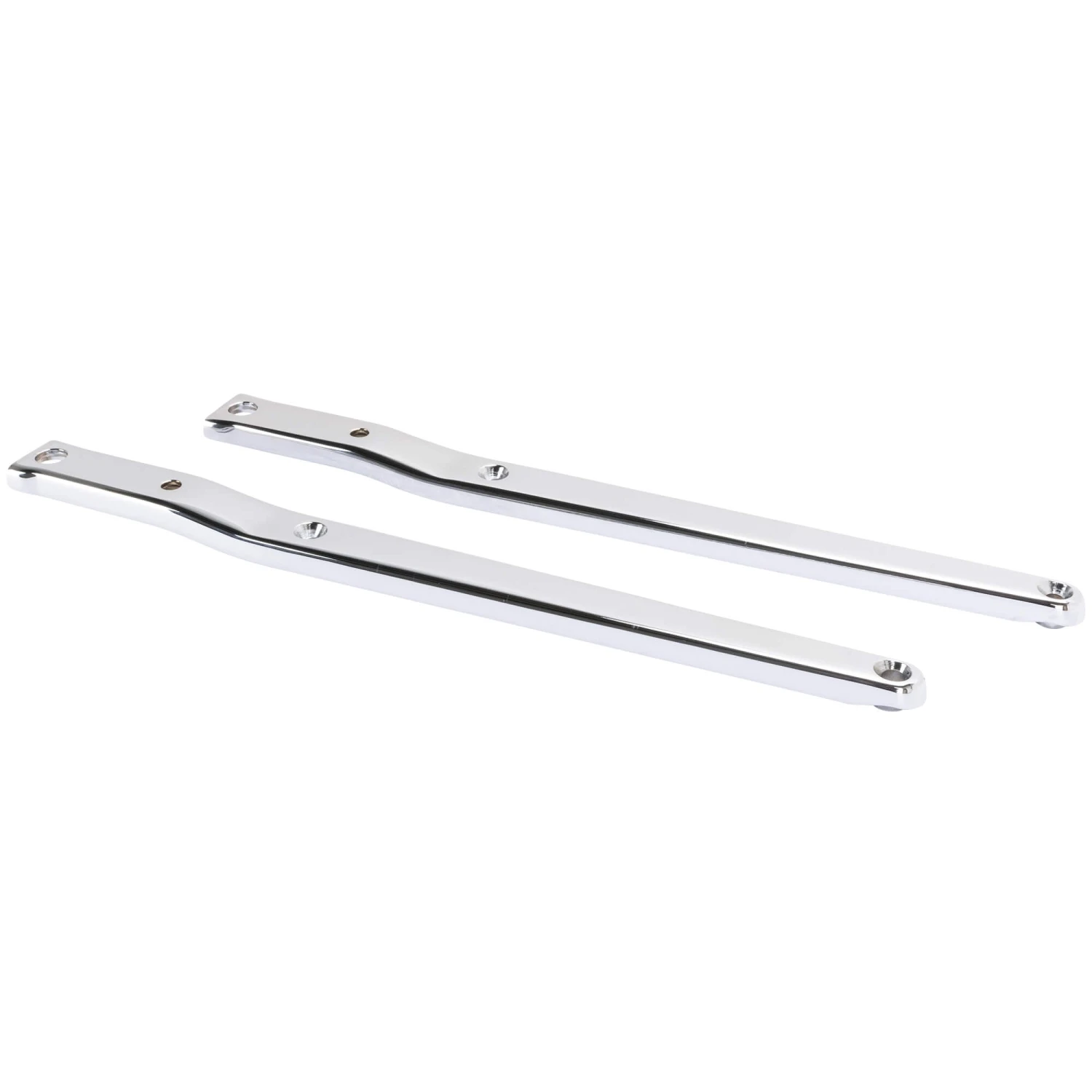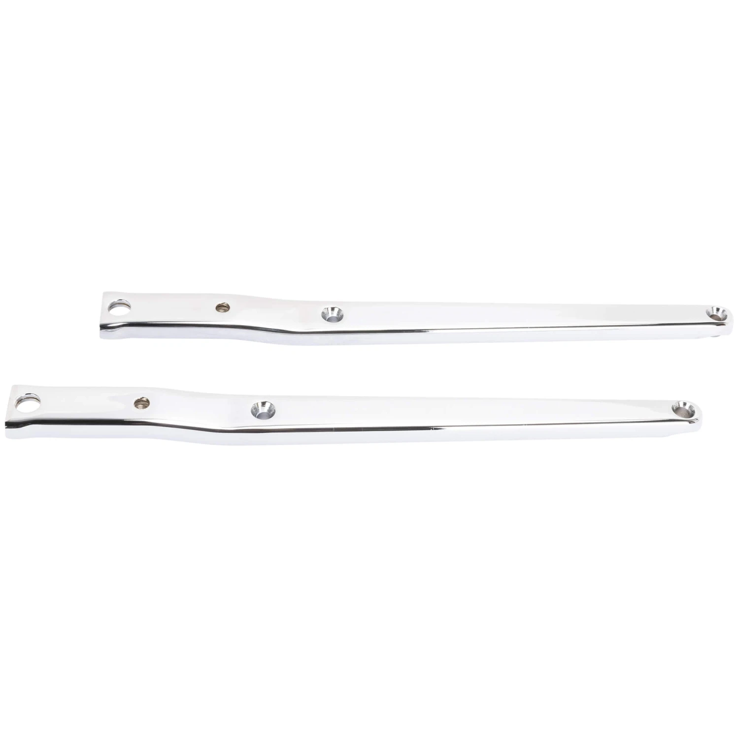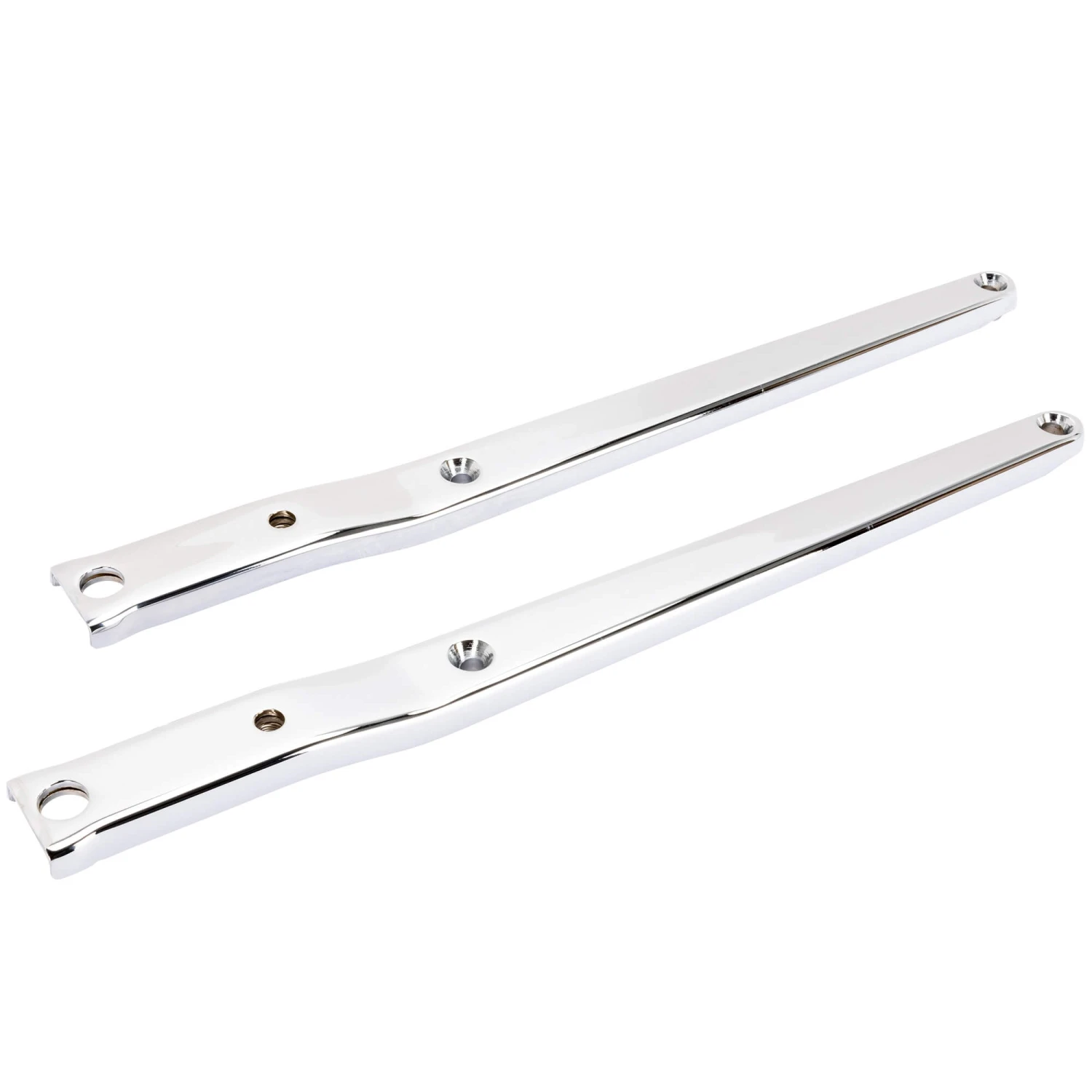 This replica rear fender strut set does not include stock location turn signal holes. The struts are constructed of steel with a chrome finish. Replaces Harley-Davidson OEM# 59934-73.