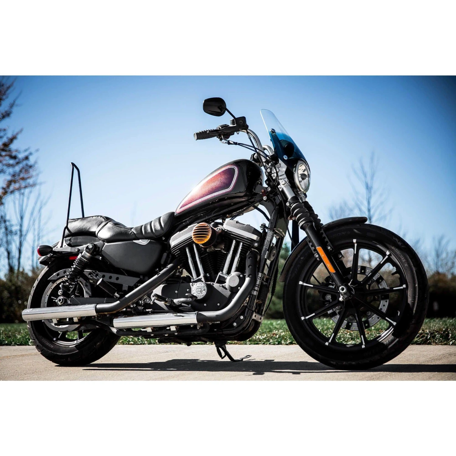 This sissy bar is a direct bolt on for 2004 & Up Harley Davidson Sportsters. Simply remove the stock frame rail cover hardware, and bolt the new sissy bar on. Featuring black powder coat to protect it from the elements.