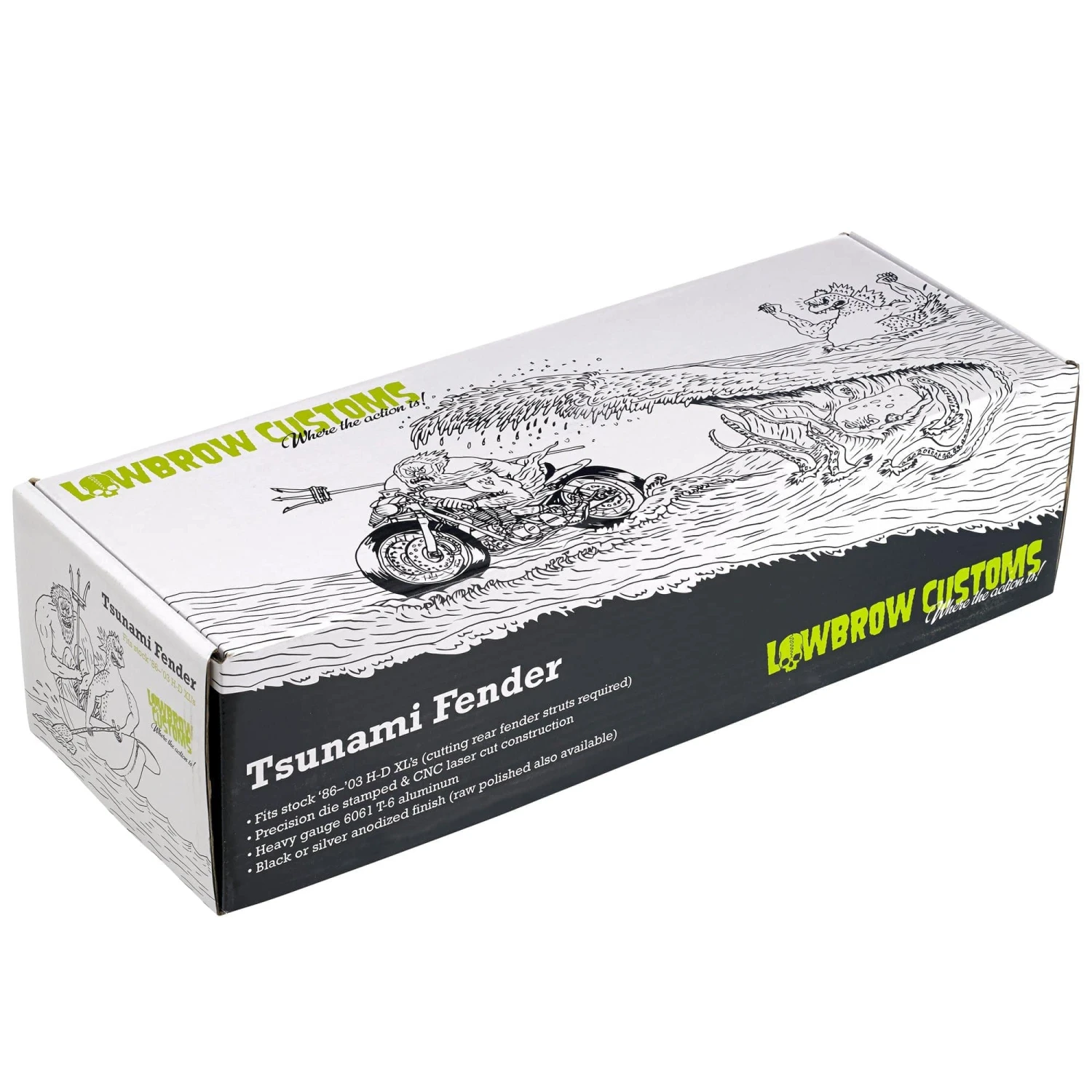 The Tsunami Fender from Lowbrow Customs bolts right in place of your stock rear fender (cutting rear fender struts required) on your 1994 – 2003 Harley-Davidson Sportster and instantly changes the look of your bike. The