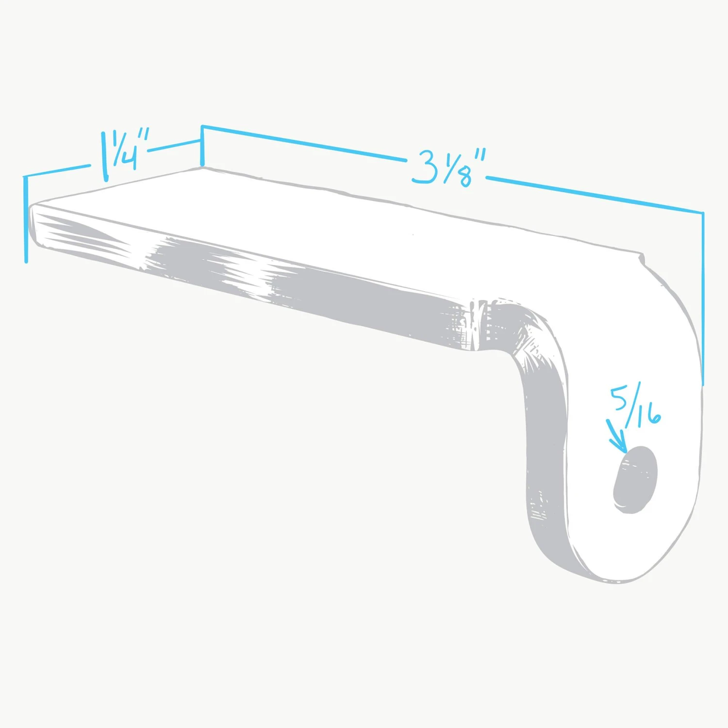 This tab was designed as a lower mount for your motorcycle rear fender, though it can be used universally to mount anything you like. It is 1/4 inch thick mild steel and has a 90 degree bend and a 5/16 inch diameter hole in it. This will work well with most any